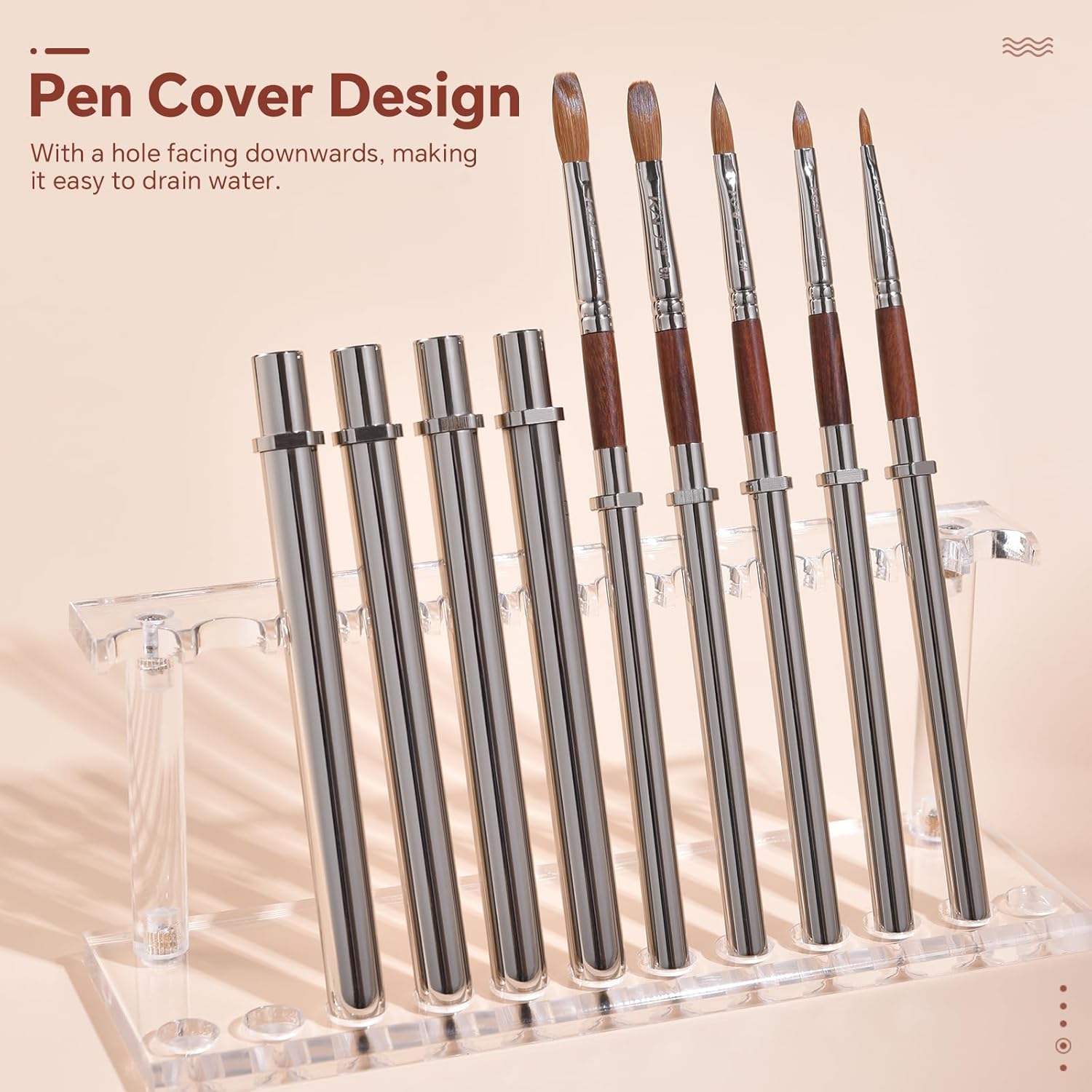 - Carefully crafted design, dual-use pen holder that can serve as both a pen cover and an extended pen holder. Even after cleaning the brush, you can still cover it with a pen cover. The top of the pen cover has a drainage hole, which not only facilitates the flow of water but also prevents dust from contaminating the brush.