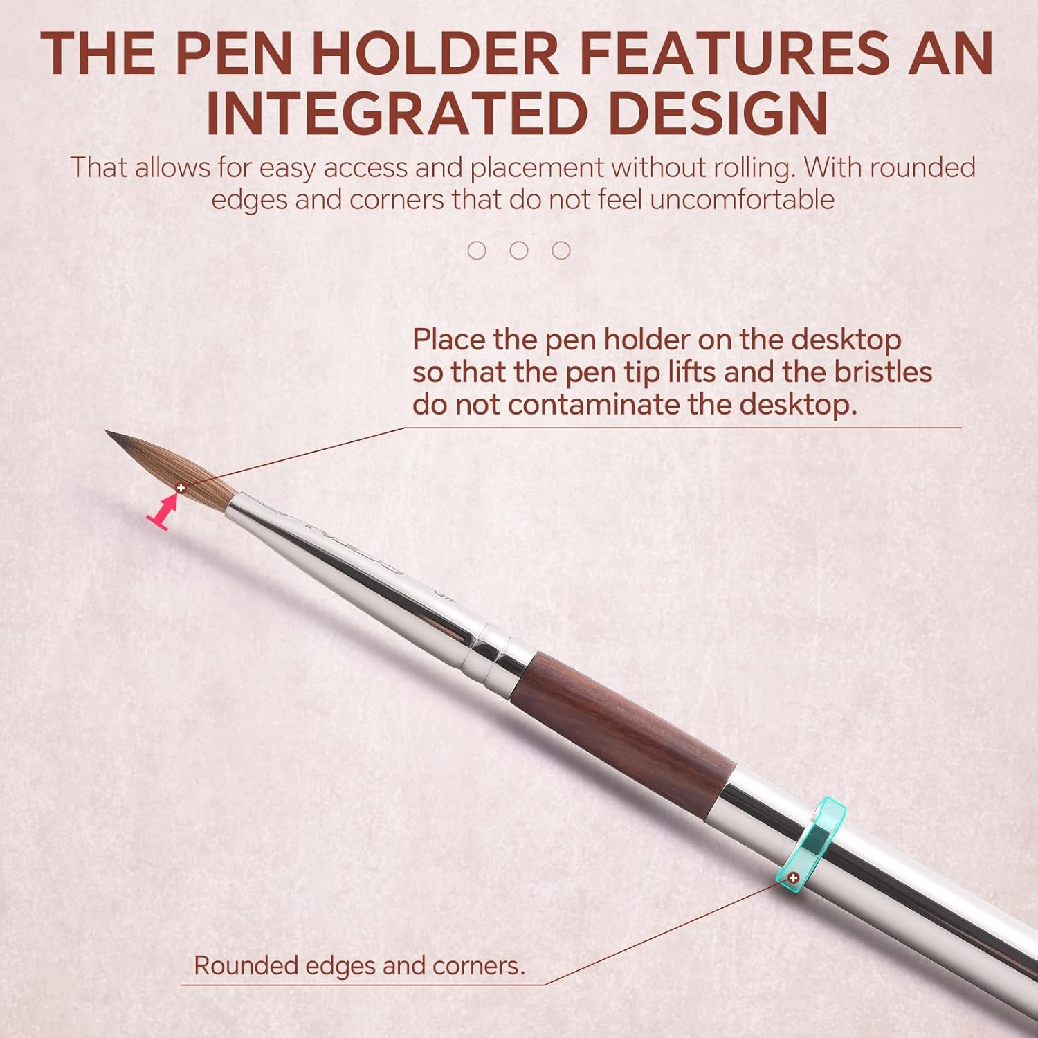 - The patented pen holder design comes with a built-in pen holder, ensuring that the pen does not roll off when placed, and the brush head does not touch the desktop, keeping the bristles and nail art desktop clean.